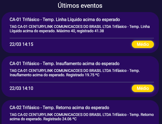 Aqui são listados os últimos eventos que ocorreram em todas as máquinas para permitir um acompanhamento rápido do que está ocorrendo.