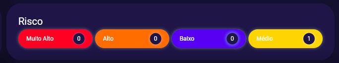 Aqui temos a indicação dos riscos relacionados aos alertas da IA. Um equipamento pode estar apresentando uma condição anormal mas que provavelmente não causará no curto prazo uma falha. Neste caso o risco normalmente será médio ou menor. Já equipamentos que estão mais próximos da falha apresentam riscos mais altos como Alto e Muito Alto.