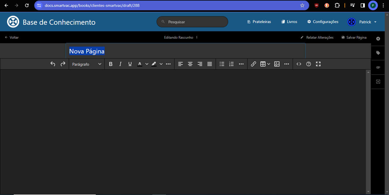 Descrever os procedimentos para criação de livros e páginas na base de conhecimento da smartvac com o objetivo de guardar os arquivos .env que são utilizados como página de configuração dos equipamentos da smartavc.