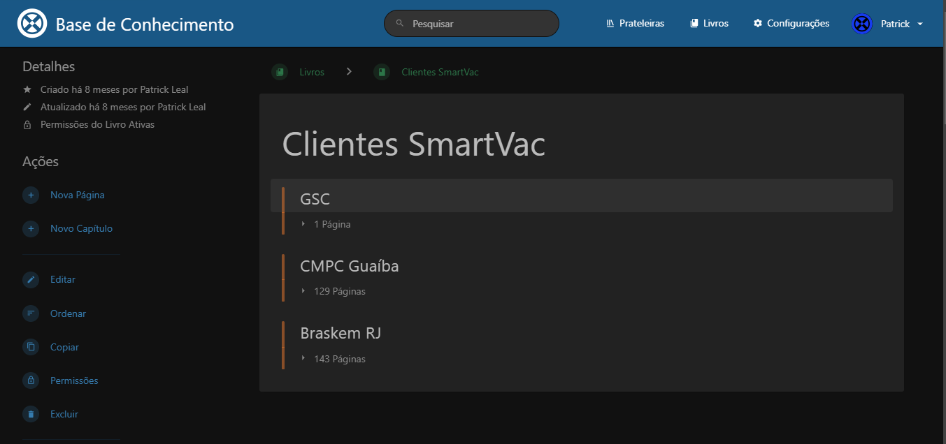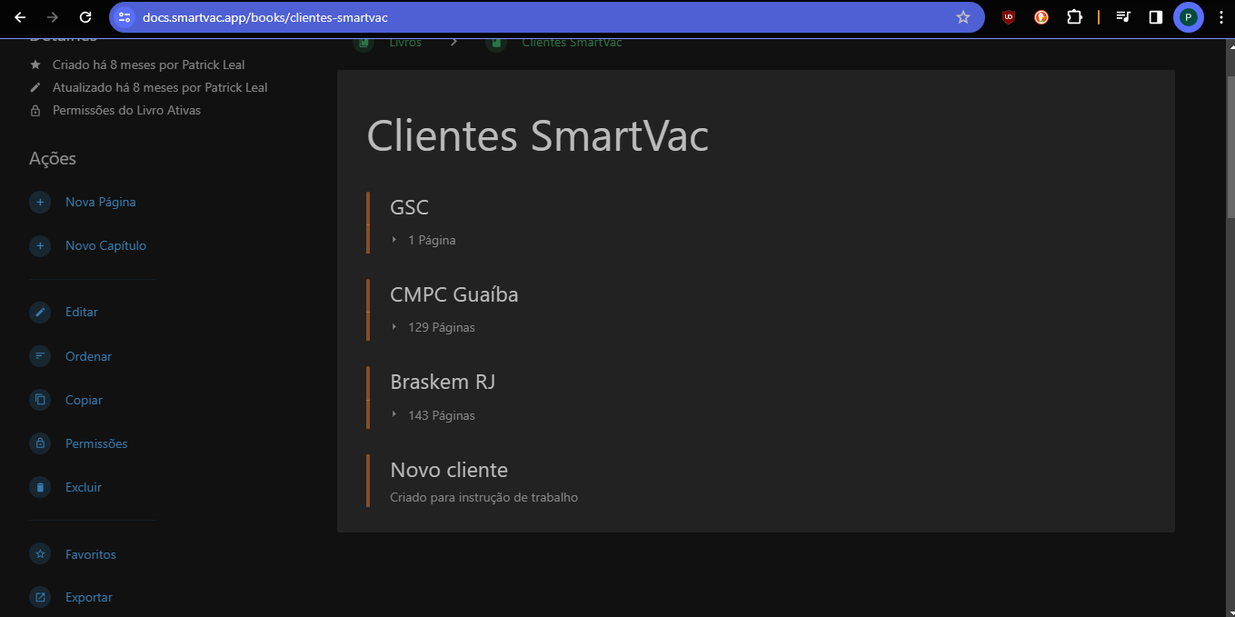 - Para acessar/editar um cliente ao livro "Clientes SmartVac", clique no livro e você verá a seguinte página.