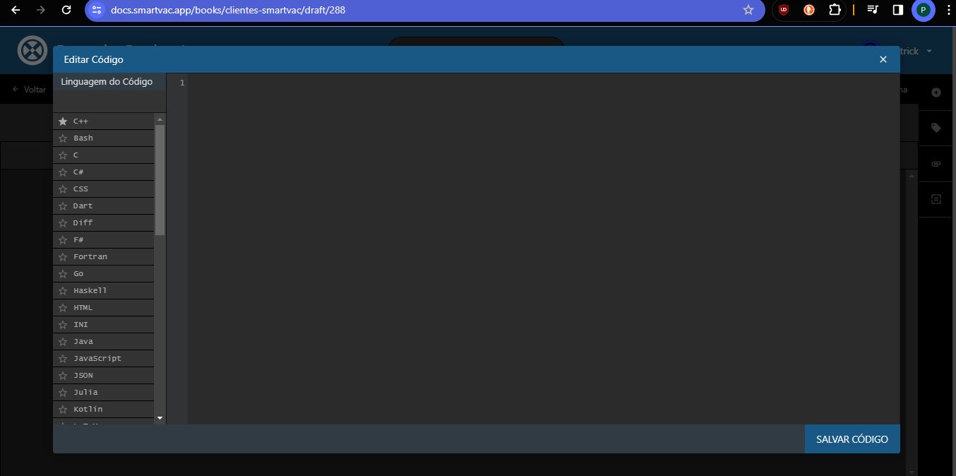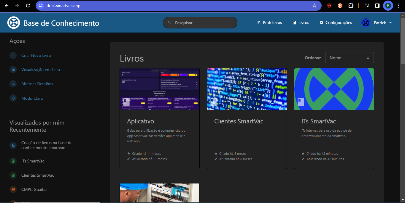 1. Criação de livros para armazenamento de código na base de conhecimento smartvac